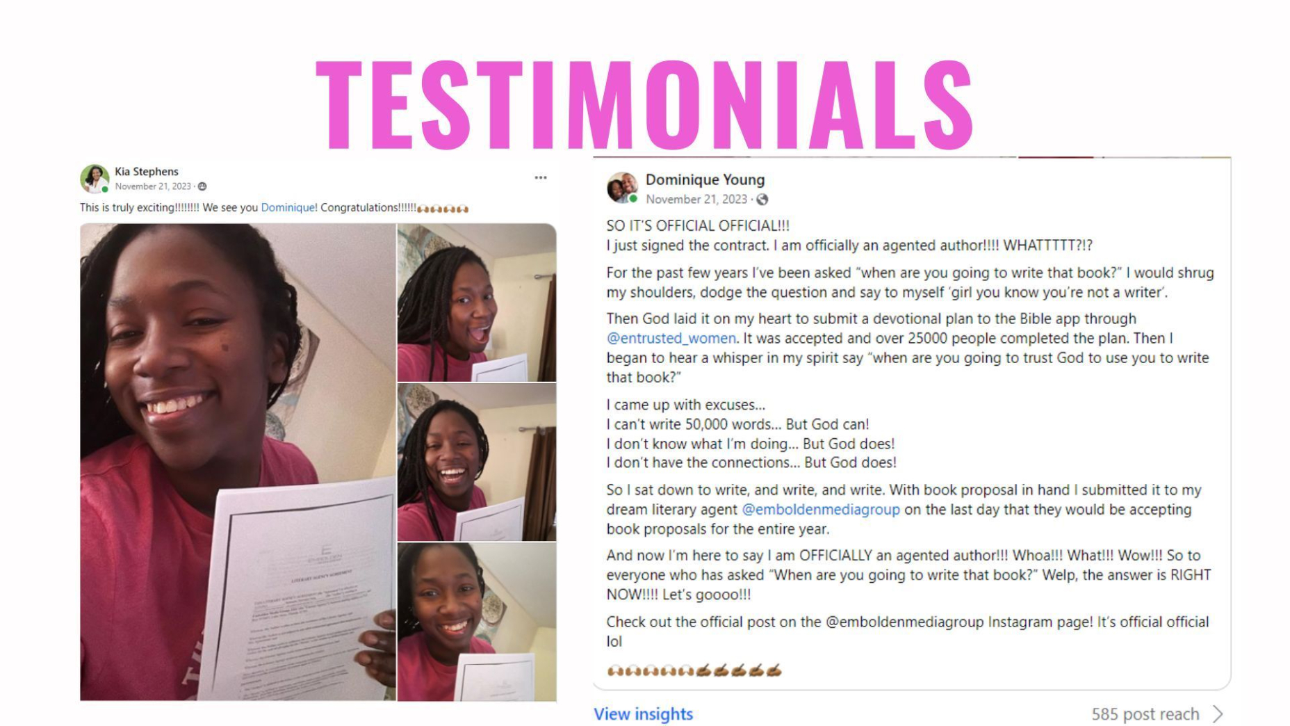 We help you market your devotional on all our social media channels, within our Facebook group, and to our email list. Become a member and access our YouVersion Partnership! We want to see you WIN!